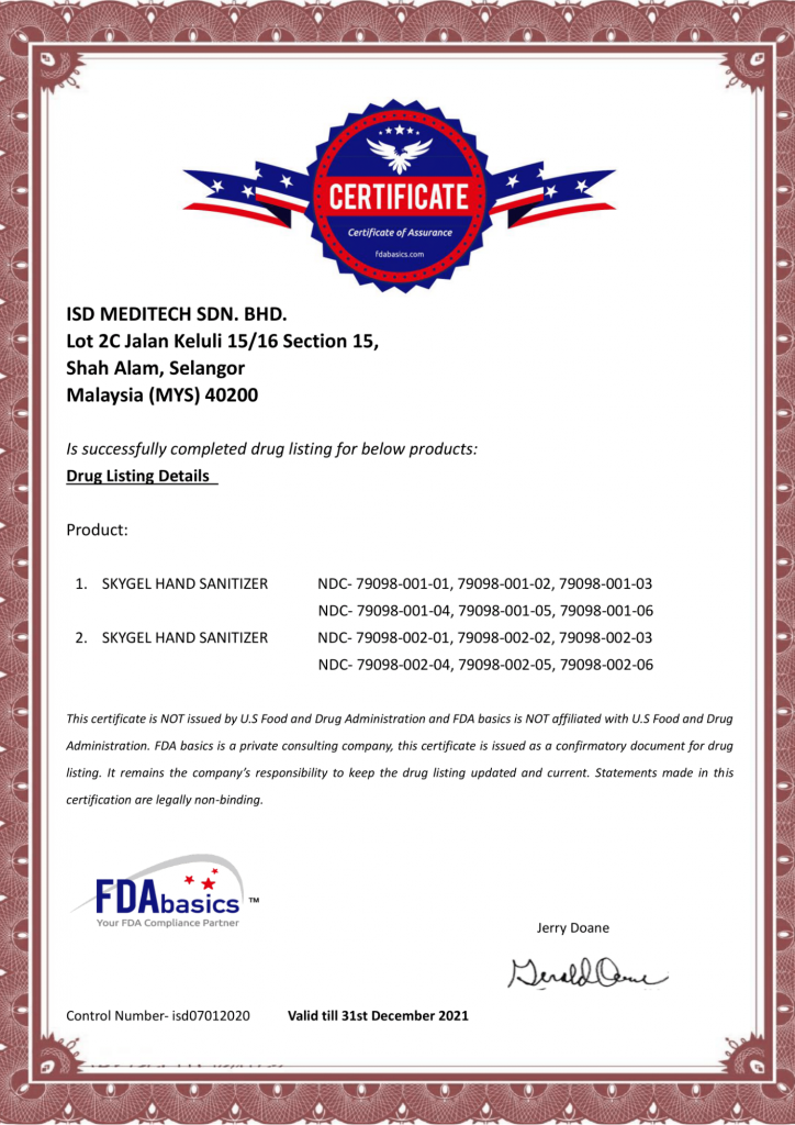 ISD Meditech Sdn Bhd is an ISO 13485 and Good Manufacturing Practice (GMP) certified manufacturer with manufacturing processes that are compliant with the regulatory standard. Tele-Paper Sdn Bhd is our sole distributor of Sky Gel hand sanitizers for more than 10 years. Our products have a presence in many countries including Singapore, Hong Kong, United States, and the Middle East.